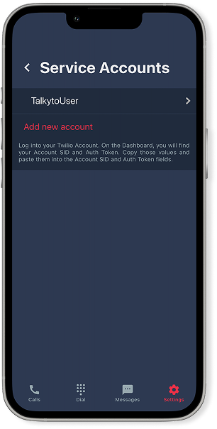 - Built-in dialer (pick number, make calls with Twilio identity)